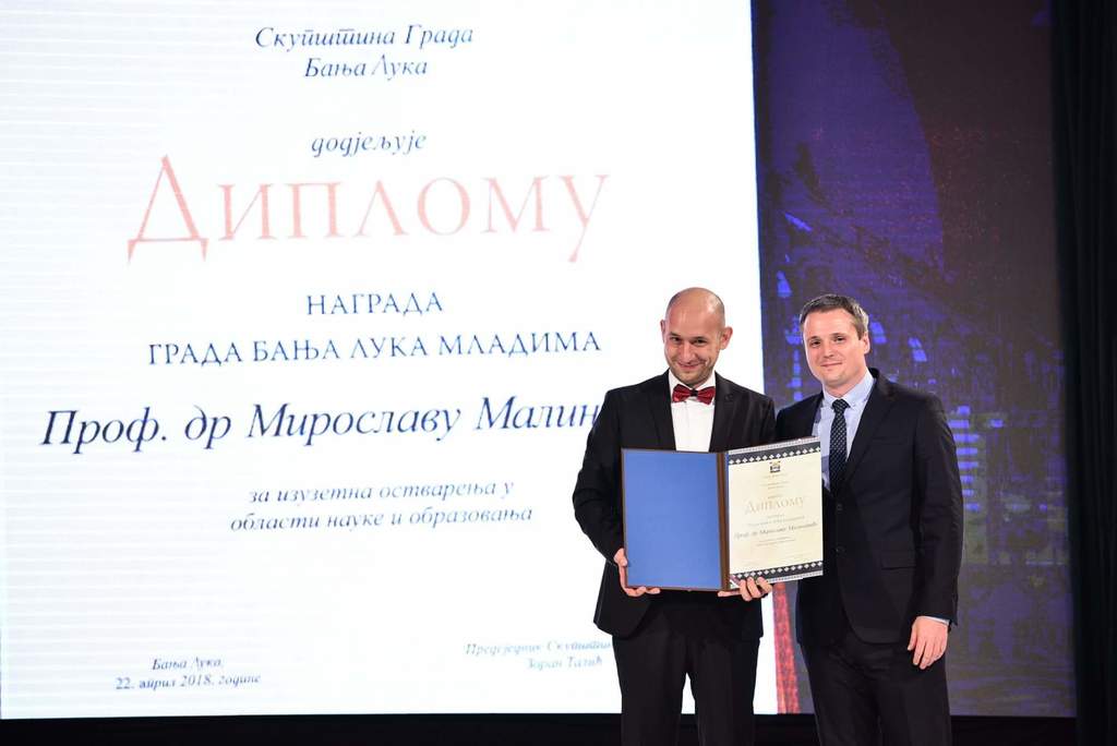 Награђен је и др Мирослав Малиновић, доцент на Архитектонско – грађевинском – геодетском факултету.