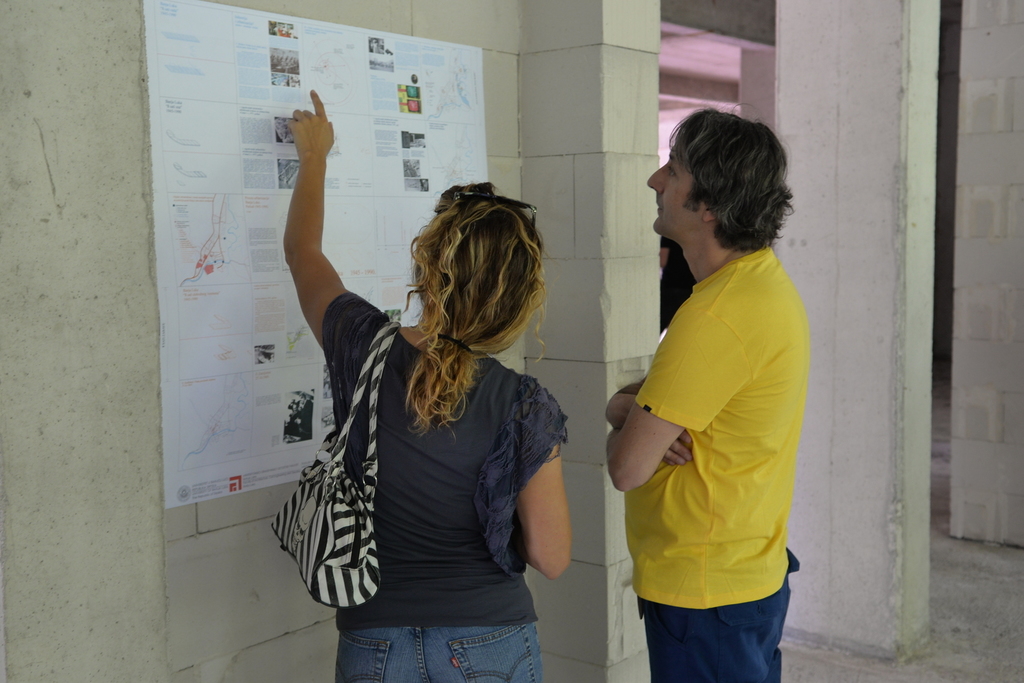 Изложба која је отворена 28. априла постављена је у градилишту нове зграде Факултета у Универзитетском граду (у простору будућих учионица, на првом спрату).