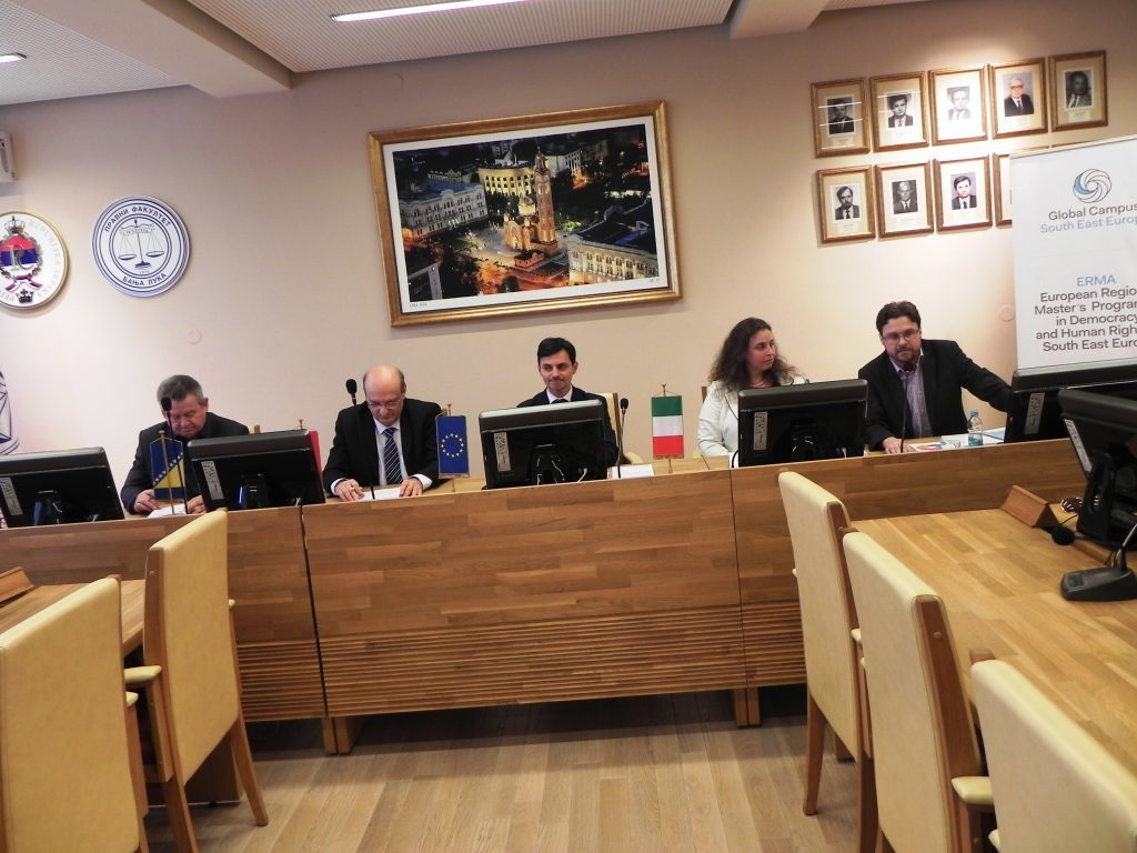 Тим поводом у госте Правном факултету, стигли су представници ЕРМА мастер програма и представници Универзитета у Сарајеву и Универзитета у Болоњи, који иначе координишу реализацију овог мастер програма. Као чланови делегације ЕРМА програма ту су били и Никола Минаси, амбасадор Републике Италије у Босни и Херцеговини и Вијара Валчанова, представница Делегације Европске Уније у БиХ.