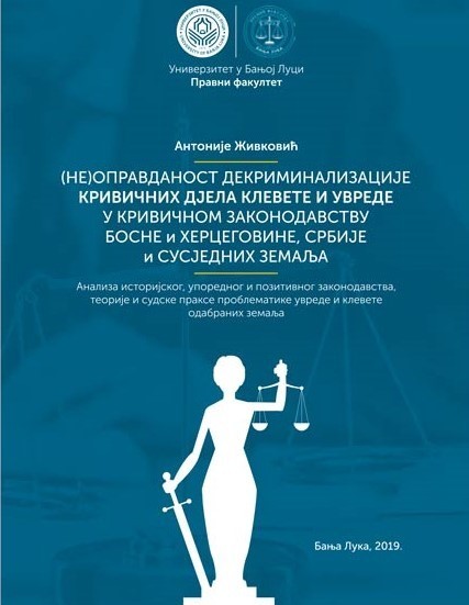 Промоција монографије ''(Не)оправданост декриминализације кривичних дјела клевете и увреде у кривичном законодавству Босне и Херцеговине, Србије и сусједних земаља'' ауотра Антонија Живовића, заказана је 12 марта 2019. године у 18.00 часова у сали број 48 на првом спрату Правног факултета Универзитета у Бањој Луци.