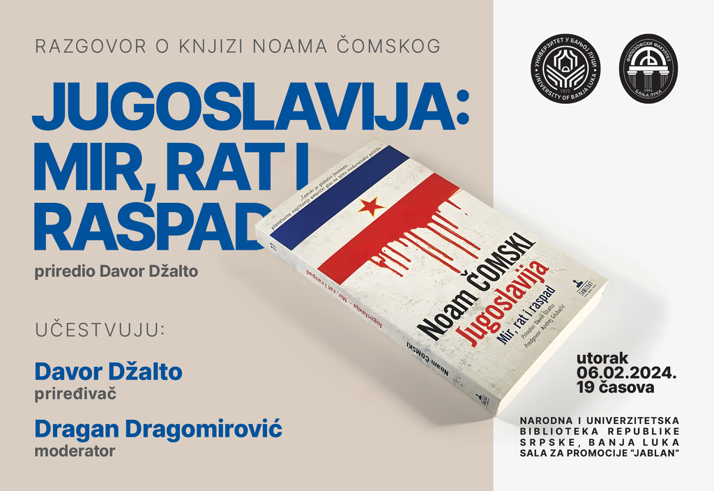 Прва активност коју Филозофски факултет организује у сарадњи са проф. Џалтом је разговор о књизи изабраних радова Ноама Чомског „Југославија: мир, рат и распад”.