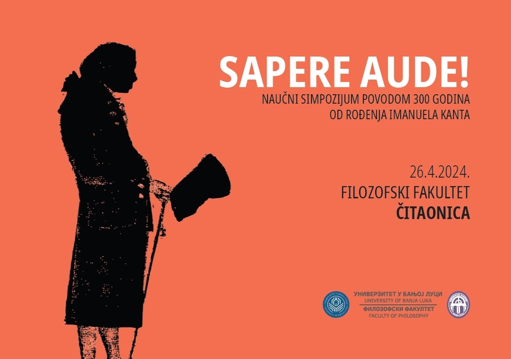 Научни симпозијум поводом 300 година од рођења њемачког филозофа Имануела Канта биће одржан 26. априла 2024. године, од 10 часова, у читаоници Филозофског факултета Универзитета у Бањој Луци.