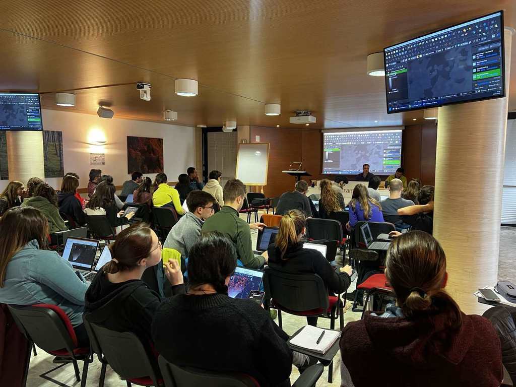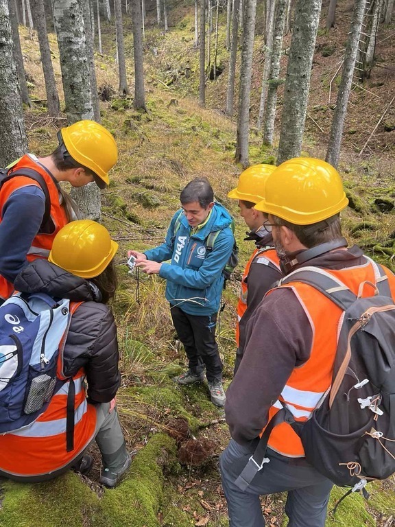 Besides the lectures, they participated in field visits in the Italian Alps (Promozio), where the students conducted practical exercises in dendrometry, geodetic measurement, GNSS tree positioning, pedology, photogrammetry with drones, and spatial modeling in the QGIS application. The activities were performed in cooperation with the CESFAM center, through a three-day field program that included the forests of Beech, Fir, Spruce, and European Larch.