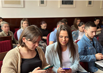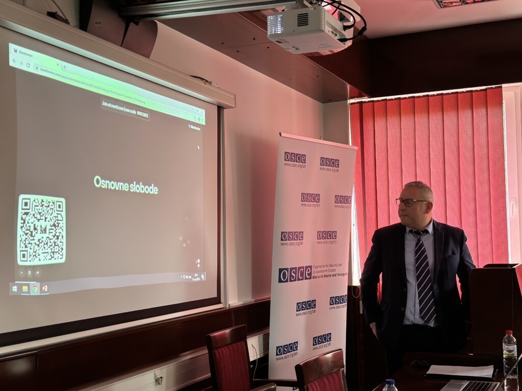 Studenti su tokom radionice u prostorijama fakulteta imali priliku da se upoznaju sa aktivnostima Misije u oblasti zaštite osnovnih sloboda, međunarodnopravnim standardima u ovoj oblasti, koji obavezuju Bosnu i Hercegovinu, kao i sa pitanjem slobode izražavanja i medijskih sloboda.