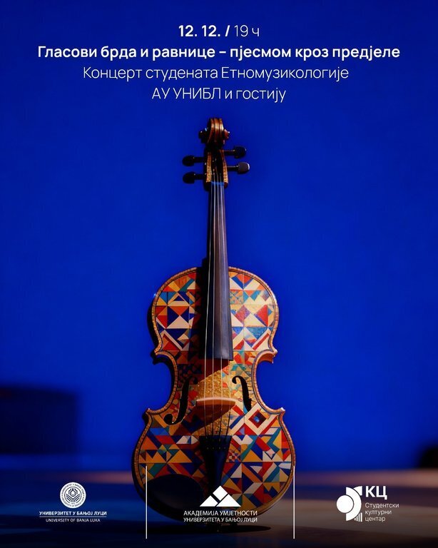 Studentski kulturni centar Univerziteta u Banjoj Luci (SKC UNIBL), 12. decembra 2025. godine, biće domaćin koncerta studenata Etnomuzikologije Akademije umjetnosti Univerziteta u Banjoj Luci pod nazivom „Glasovi brda i ravnice – pjesmom kroz predjele”.