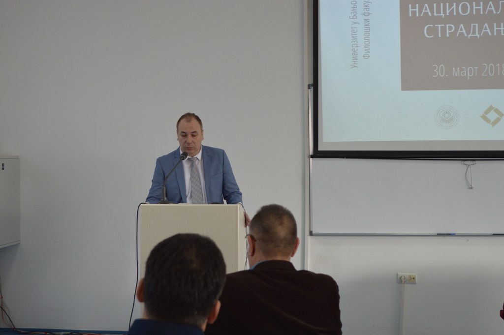 У свечаном дијелу конференције учеснике и бројну публику поздравили су проф. др Лука Кецман, проректор за људске и материјалне ресурсе Универзитета у Бањој Луци и проф. др. Петар Пенда, декан Филолошког факултета.