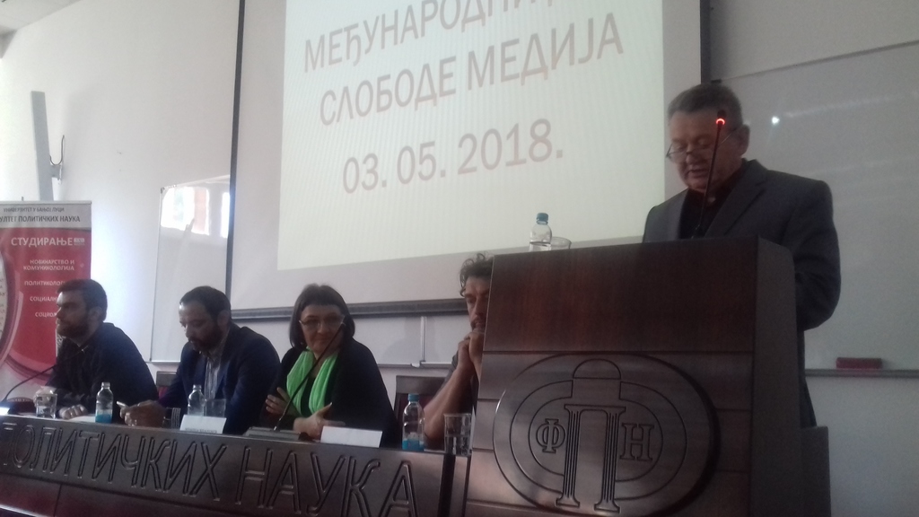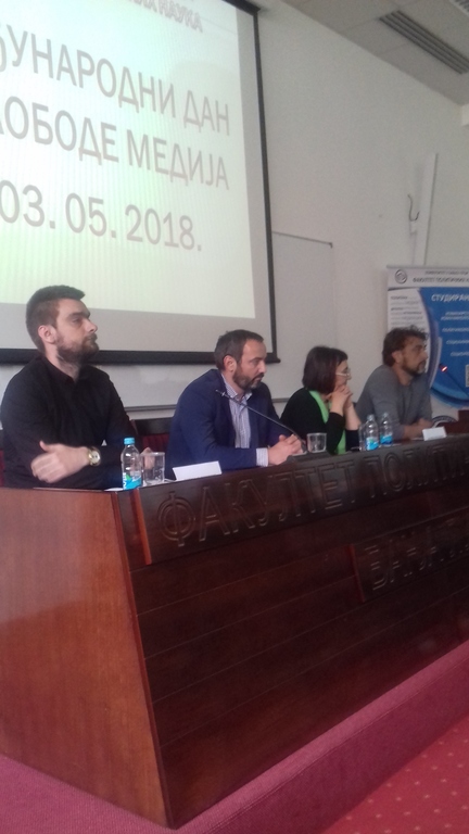 Универзитет у Бањој ЛуциОпштеПанел дискусија под називом „Слобода медија и истраживачко новинарство“ одржана је 3. маја 2018., на Факултету политичких наука Универзитета у Бањој Луци повод обиљежавања Свјетског дана слободе медија.