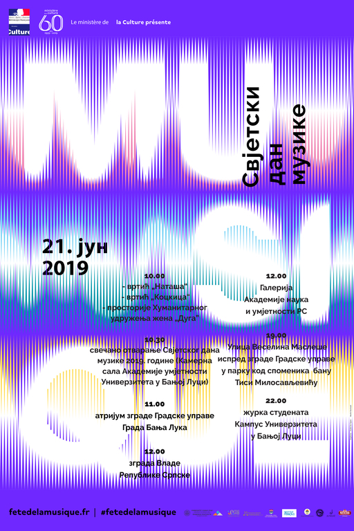 Универзитет у Бањој ЛуциОпштеКао и претходних осам година, Академија умјетности Универзитета у Бањој Луци, 21. јуна 2019. године обиљежава Свјетски дан музике.