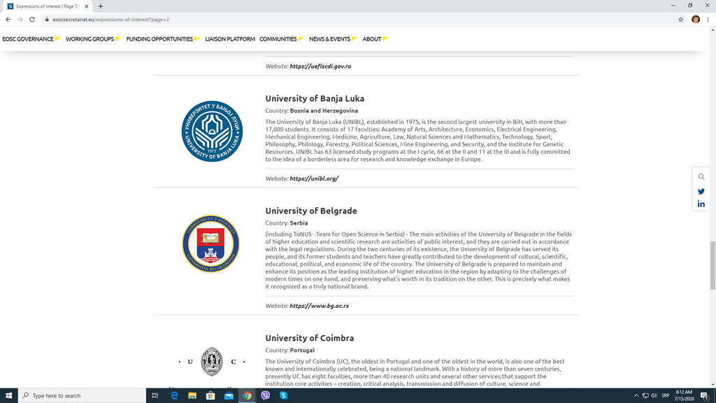 Важно је нагласити и то да је Универзитет у Бањој Луци, први универзитет из Републике Српске који је изразио интерес за приступање Асоцијацији Европског облака отворене науке, у јуну 2020. године.