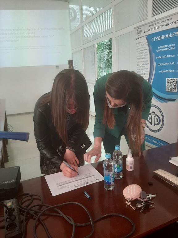 Универзитет у Бањој ЛуциОпштеМастерклас „Борба против лажних вијести и дезинформација“ успјешно је одржан на Факултету политичких наука Универзитета у Бањој Луци (УНИБЛ) 23. и 24. априла 2021. године.