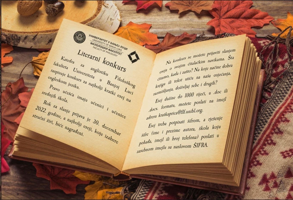 ОпштеКатедра за англистику Филолошког факултета Универзитета у Бањој Луци трећу годину заредом расписује литерарни конкурс, овај пут за најбољи кратки есеј на енглеском језику.