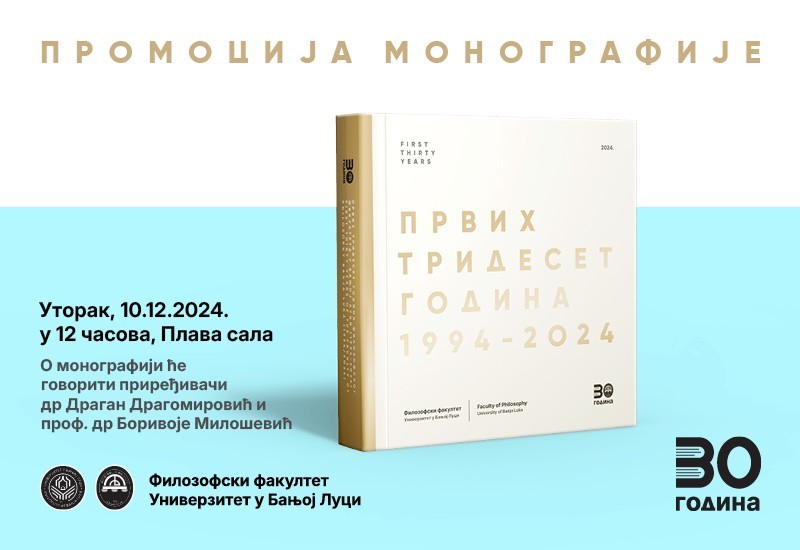 Ријеч је о монографији насталој поводом 30 година Филозофског факултета Универзитета у Бањој Луци.