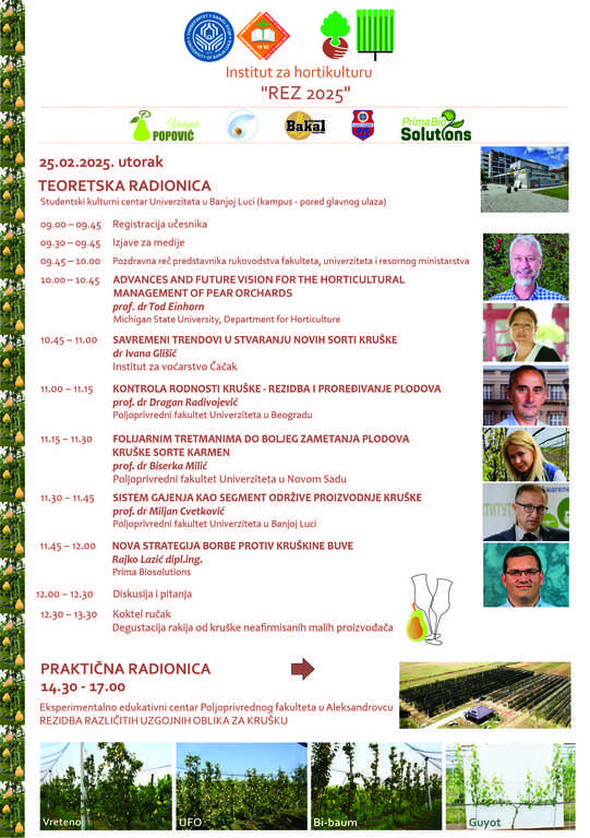 Овогодишња радионица посвећена је узгоју и резидби крушке, с обзиром на њен значај у воћарству, али и изазове са којима се произвођачи сусрећу. Догађај се реализује у сарадњи са Пољопривредним факултетом Универзитета у Новом Саду, Пољопривредним факултетом Универзитета у Београду, Институтом за воћарство у Чачку и Универзитетом у Мичигену.